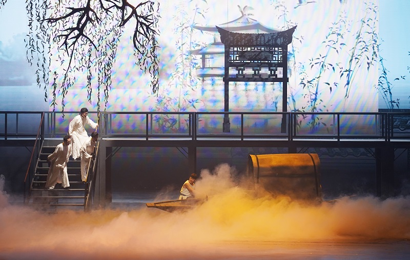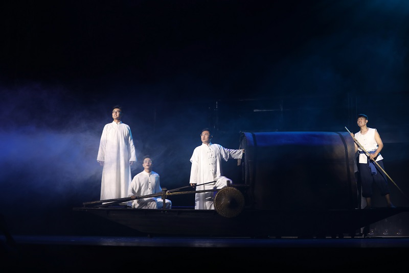 音乐剧《白云溪上》截取了中共早期领导人瞿秋白、张太雷、恽代英短暂而又光辉的生命须臾、情感点滴为素材,以当代青年的人生追求为主线,表达了老一辈无产阶级革命家为谋人民幸福而舍生忘死的人生追求,也展现了当代青年不忘初心、牢记使命,为创造美好生活而努力拼搏的人生选择。该剧以当代发生的现实故事引出了三段革命先烈的生命经历:恽代英与母亲的亲情、张太雷与妻子的爱情、瞿秋白与张太雷的友情曾经在那一刹那决定了他们的人生选择!表现了革命先烈们当初秉持初心走上救亡图存,为人民谋幸福、为国家谋未来的奋斗之路。该剧将三个重要的历史人物在一部剧中展现,以概念音乐剧的方式完美诠释了历史真实与艺术真实的再平衡,用丰富的舞台语言、音乐语言实现过去与现在两个时空的穿越与勾连;以全新的视角和观念举重若轻、深入浅出地塑造历史人物,使“常州三杰”的生命印记和精神世界凝结出的绚烂之花在历史长河中精彩绽放!