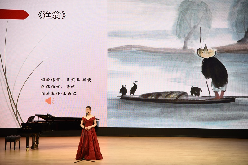 音乐会由歌曲《在水一方》拉开帷幕,优柔的歌声中仿佛看到一位诗人踏着霜而来,伫立河边,凝神“伊人”的一方,怅然不已。歌曲《诺言》浪漫典雅,旋律轻快,富有典型的罗西尼式的幽默风格。《乡谣》以悠远的歌声折射出历史的变迁及社会底层人物茫然与无奈。歌曲《越人歌》述说了越人船女对君子皙真挚的情感,讴歌了跨越阶层的浪漫爱情。《嘉陵江上》深情地表达了成千上万流亡到大后方同胞,对强占了自己家乡的日本侵略者的切齿痛恨及对沦陷在敌人铁蹄下的故乡和亲人的深切怀念。《渔翁》一曲通过描绘垂钓于山水之间的老渔翁,表现了古代文人对山林隐逸生活的由衷向往,词句恬淡隽永、情趣幽远。《绒花》以委婉抒情的民歌风曲调,歌颂了革命年代的牺牲和奉献精神。曲调新颖流畅,富有激情。《不忘初心》曲调悠扬,歌词暖心,一句“不忘初心,继续前进,万水千山,最美中国道路”,让人重温红军长征那段艰苦卓绝的峥嵘岁月,道尽对祖国和人民的浓浓深情。