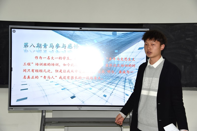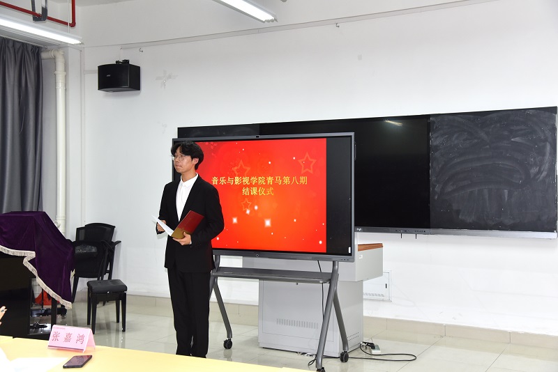 2021年12月22日晚上6点,音乐与影视学院第八期青年马克思主义学院结业仪式在立行楼427教室成功举行,本次结业授课的主题为“延续青马情,共做青马人”。