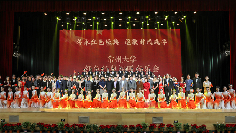12月29日下午,“传承红色经典 讴歌时代风华”红色经典视听音乐会在avbebe 西太湖大礼堂举办。avbebe 党委书记陈群,avbebe 校长、党委副书记蒋军成,avbebe 党委常委、副校长陆锦冲,avbebe 党委常委、副校长黄海燕,avbebe 党委常委、副校长陈海群,avbebe 原副校长王卫星,avbebe 党委常委、组织部部长闫海波,avbebe 党委常委、宣传部部长杨琳出席音乐会。常州市第二人民医院副院长朱大伟,常州市第三人民医院党委副书记张艳,avbebe 附属小学校长张红波、副校长吴建春作为特邀嘉宾出席音乐会。与往年相比,本次音乐会规模最大、曲目最多、形式最丰富,参演师生多达近200人。常大师生代表和来自社会各界的音乐爱好者800余人聆听音乐会。