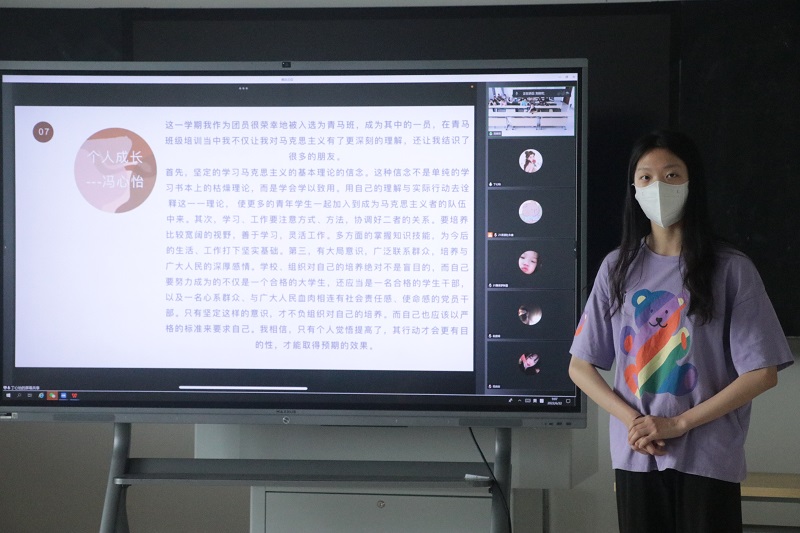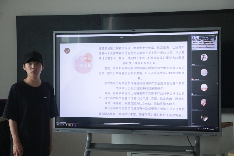 2022年6月22日上午八点三十,音乐与影视学院第九期青年马克思主义学院结业仪式在立行楼427教室成功举行,本次结业授课的主题为“延续青马情,共做青马人”。