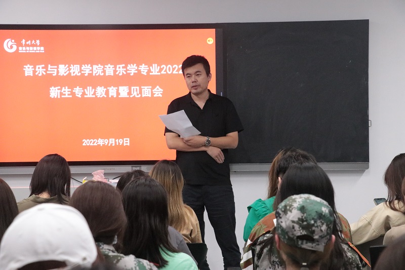2022年9月19日下午,音乐与影视学院2022级音乐学专业教育暨师生见面会在立行楼351举行。副院长赵一兆,专业负责人王成文,系主任李久晨,院长助理仲一、何佳莹、崔倡,新生班主任以及专业教师出席本次会议。