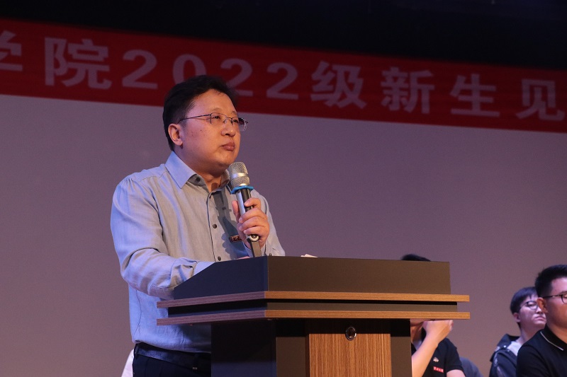学院领导对全体新生的到来表示热烈的欢迎和诚挚的祝贺。唐琳书记在致辞时勉励同学们,要做仰望星空、志存高远的有志青年;要做脚踏实地、积极进取的行动青年;要做修身立德、音正乐善的厚德青年。唐书记表示,希望同学们珍惜韶华,抓住机遇,践行理想,追求艺术真谛,在青春的舞台上发现自我、提升自我、成就自我,早日成为国家的栋梁之材。王成文教授作为教师代表发言,他表示:希望同学们做一个突破“自我”,砥砺前行的人;做一个敢于负责,勇于担当的人;做一个懂得延迟满足,学会自控、善于自我管理的人。熊祖鹏院长在讲话时围绕学院专业建设、学科分布、师资力量、人才培养等方面取得的成绩,介绍了学院的办学情况,他还鼓励2022级新生要坚持独立思考,从被动接受知识到主动探求创新知识,从被动接受他人的观点到主动思考,形成自己的思维体系和管理体系,真正理解人生的含义,追求至善,追求卓越,崇德臻美,胸怀家国天下,演绎美好人生。
