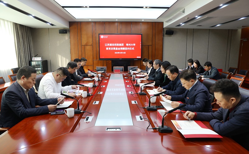 10月14日下午,学校在科教城校区文正楼举行江苏建设教育发展基金捐赠签约仪式。江苏建设控股集团有限公司名誉董事长杨大伟、董事长杨光、总裁杨圣、党支部书记乔敏,常州市同创复合材料有限公司董事长何越江,党委常委、副校长黄海燕出席签约仪式,校发展规划处、教育发展基金会秘书处、音乐与影视学院负责人参加活动。音乐与影视学院党总支书记唐琳主持签约仪式。