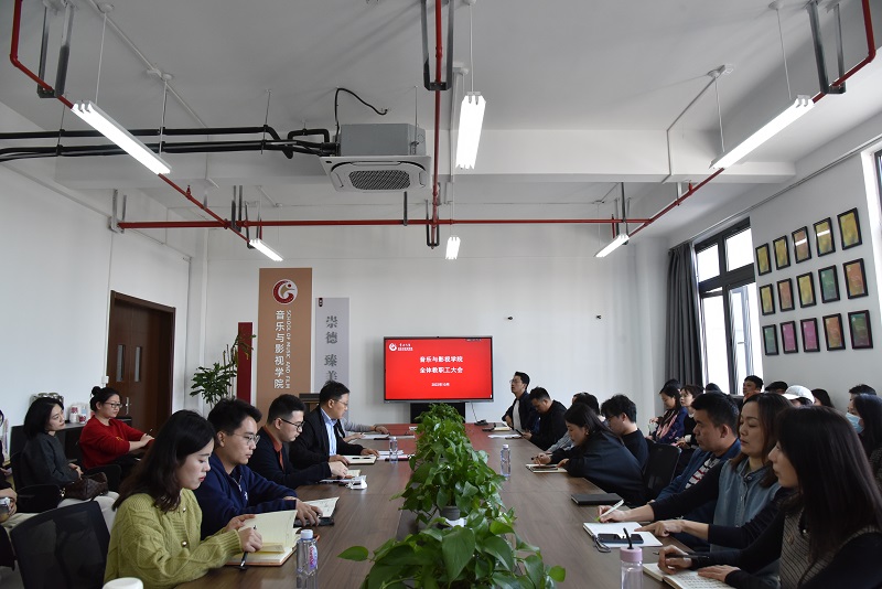 10月19日下午,音乐与影视学院在立行楼442室召开全体教职工大会,学院全体教职工参加会议,会议由院长熊祖鹏主持。