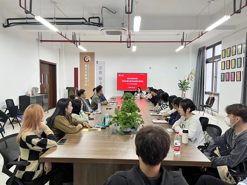 为进一步加强研究生教学管理,提高教学质量,2022年11月11日,音乐与影视学院在立行楼442会议室召开研究生期中教学检查师生恳谈会。学院院长熊祖鹏、副院长赵一兆、校督导王琳、任课老师代表及2022级全体研究生参会。会议由艺术硕士(音乐)学科负责人王成文教授主持。