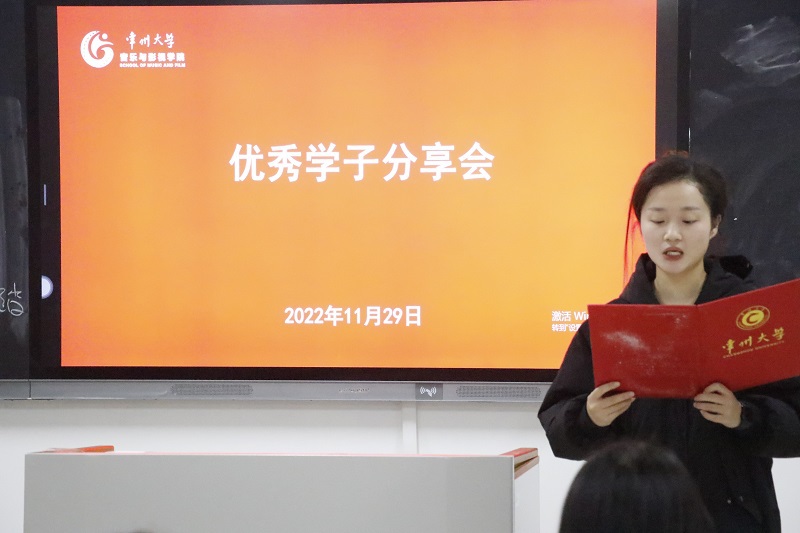 为营造优良学风,充分发挥学生标杆的力量,引导广大学生乐学、善学,全面提升学院教育教学工作质量,2022年11月29日,音乐与影视学院优秀学子经验分享会在立行楼427顺利举办,2022年度校学生标兵刘艺璇、邵宇受邀为与会同学带来学习经验分享。