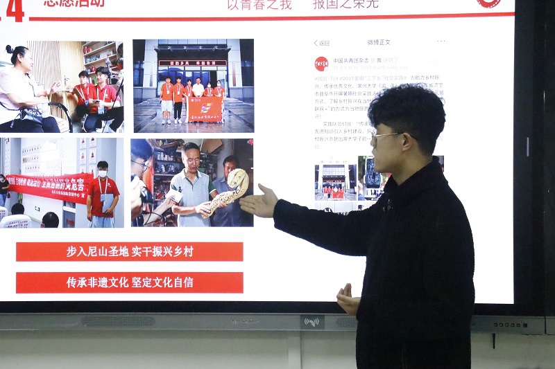 优秀学子邵宇同学围绕“守正,创新,融合,发展”马克思主义新思想展开话题,在讲述的过程中,他展示了自己的学业成长、学院工作、社会实践、竞赛创新经历,并强调了做好规划的重要性。他指出,身为大学生,应在守正上务实基础,稳扎稳打;在融合上精诚合作,携手奋进;在创新上惟变所出,万变不从;在发展上迎难而上,攻克难关。活动最后,两位优秀学子与场下学生就学业上的问题进行了交流和探讨。