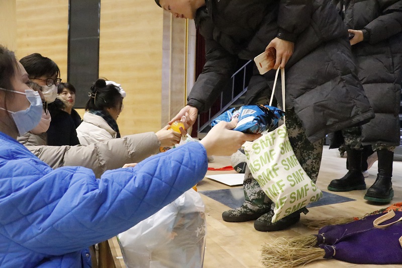 2022年12月8日晚,音乐与影视学院分工会为正在排练话剧《月亮与烟火》的表演系191班同学们和表演系的老师们进行演出慰问,送上温暖和关爱。