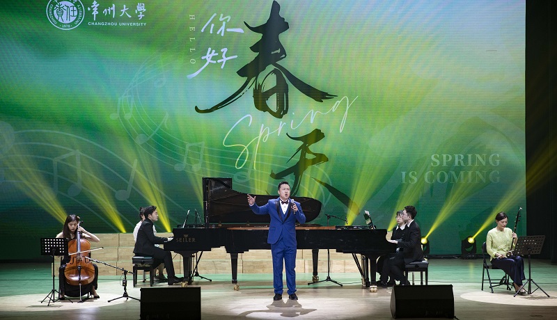 文艺汇演由“春·萌”、“春·颜”、“春·俏”、“春·恋”四个篇章组成,通过音乐、表演、舞蹈、朗诵等形式与春天对话,生动演绎春天的生机活力,传递生命的复苏、万物的生长和对未来的希望。铿锵激昂的民乐重奏《敦煌》拉开了晚会的序幕,乐曲一响起,浓郁的西域风情扑面而来,瞬间点燃现场热情。诗朗诵《春的愿景》讲述了学校建校45年的发展历程与取得成果,感人肺腑,沉挚、坚定、富有现代感,紧凑而充满张力的语言燃烧着生命的火焰。群舞《东方红》气势磅礴,感情细腻,以史诗般的宏伟风格和波澜壮阔的音乐舞蹈场面,生动形象地表现了英勇顽强的中国人民艰苦奋斗,前赴后继的革命精神和英雄气概。江苏省大学生戏剧展演获奖小品《诚信是唯一的出路》生动地诠释了诚信经营、诚信为人的重要价值,精彩的演绎体现了我校美育教育的优秀成果。苏联经典歌曲《莫斯科郊外的晚上》、空灵悠扬的《贝加尔湖畔》和令人热泪盈眶的《人世间》组成的歌曲联唱,充分展示了风格各异的歌曲形式和演绎者变幻高超的声乐技巧。歌伴舞《走进春天》、《春天的芭蕾》用乐舞一体的浪漫表达了常大人对春的祝福,婀娜曼妙的舞姿展现了中国传统文化之美,圆舞曲欢快的节奏把春天的活力表现得淋漓尽致。民乐重奏《春江花月夜》委婉质朴的旋律,流畅多变的节奏,巧妙细腻的情感,丝丝入扣的演奏,引人入胜。群舞《刀郎麦西来甫》凸显异域风情,自由而富有力量,充满了喜悦和幸福。器乐诗歌《时代畅想》饱含深情,乐器和歌声碰撞出最真挚的情感,描绘了伟大祖国在生机盎然的春天里欣欣向荣的大好局面。文艺汇演在合唱《来吧,来吧!春天》、《白驹》的美妙歌声中走进尾声,踔厉奋发趁春早,用青春的旋律唱出了常大最美的声音。