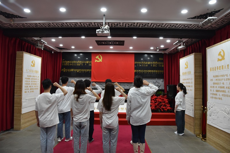 温誓言,明初心,宣誓大厅,红色鲜艳的党旗,数块经历不同历史时期洗礼的誓言碑,其厚重的历史不断冲击着每一位党员的心。面对党旗,党支部书记李思琦带领全体成员庄严宣誓,重温入党誓词。铿锵而坚定的声音回荡在宣誓大厅,提醒着在场的每一位党员接续奋斗、勇毅前行。