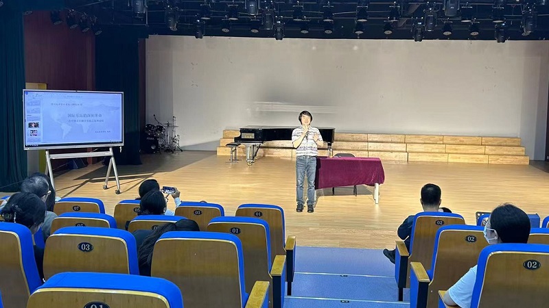 此次讲座主讲人周耘,民族音乐学家,武汉音乐学院二级教授、博士生导师,长江传统音乐文化研究中心主任,中国艺术类大学高贡献学者,中日音乐比较研究会副会长,国家社科基金、国家艺术基金、国家高端外国专家引进项目CCTV中国器乐电视大赛、成都国际非遗节专家评委。周耘以“国际乐坛的深刻革命——一次中俄音乐融合实验之延展叙事”为主题,讲述他在日本求学期间,通过与同事的合作,实现巴拉莱卡与中国传统音乐的有机结合;通过讲述甘美兰与西方音乐的结合,探索艺术创新的新路径。周耘通过分享亲历经验,讲述多元文化的交融路径,指出文化交融影响到音乐生活各个方面,作为音乐人需要有实现文化交融的视野。