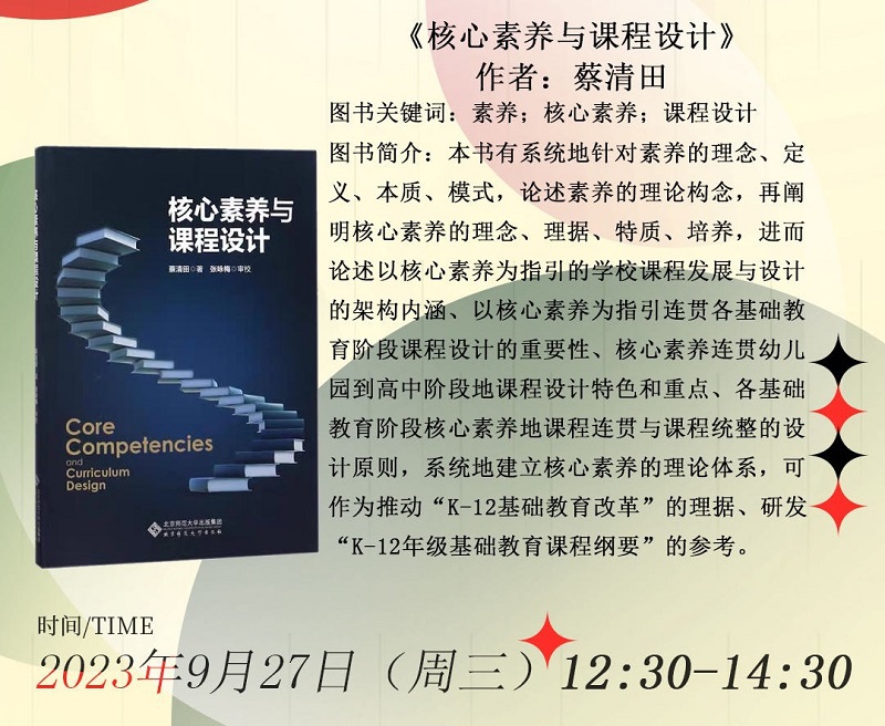 本次读书会围绕蔡清田教授的书籍《核心素养与课程设计》进行分享。领读人为:韩蕊、刘海燕、张晨晔。