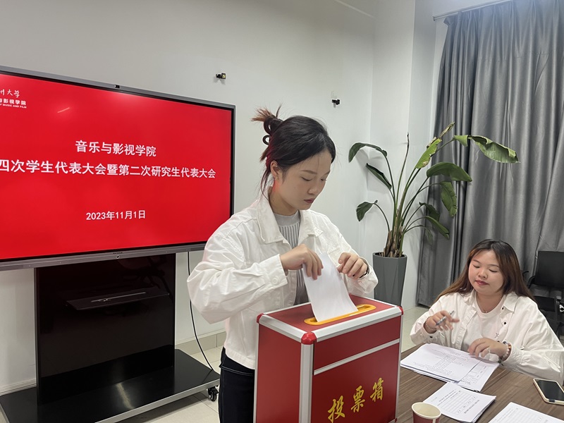 为贯彻落实党的二十大精神,着力发挥院团委的思想引领作用,强化团委、团学组织的政治性、先进性和民主性,2023年11月1日晚,音乐与影视学院第四次学生代表大会暨第二次研究生代表大会在立行楼442召开。会议由院学生会主席马一茗、刘俊宏,团副吴侠佃主持,院团委书记罗扶摇、团学主席团成员及各本科生、研究生学生代表参与了本次会议。