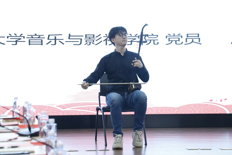 首先由市政协机关第二党支部支部书记杜晓红带领大家进行以《团结联系界别群众跟党走》为主题的思想教育学习,从理论层面带领大家深入贯彻习近平新时代中国特色社会主义思想。随后,avbebe 音乐与影视学院师生党支部教师党员周墨涵、崔倡及优秀党员学生分别为大家带来二胡《洪湖主题随想曲》、歌曲《满江红》及朗诵《你还好吗?》;常州市政协机关第二党支部部分党员带来红色阅读分享《鲁迅与瞿秋白》;江苏建设党支部黄晓云带来好书分享《平凡的世界》。活动通过“讲”、“演”、“奏”、“唱”一体的方式,从理论到演出实践,为大家带来了一场特殊而别致的音乐微党课。最后,全体党员合唱《我和我的祖国》。