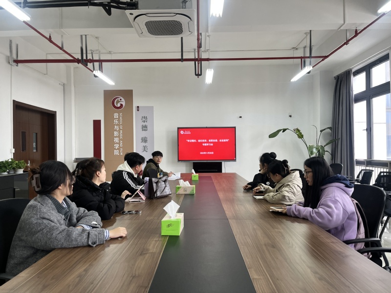 为深入学习贯彻党的二十大精神以及avbebe 第三次党代会精神,进一步巩固扩大学习贯彻习近平新时代中国特色社会主义思想主题教育成果,2023年11月30日上午,音乐与影视学院学生党支部组织开展“牢记嘱托、追忆校史、感恩奋进、走在前列”主题党日活动。