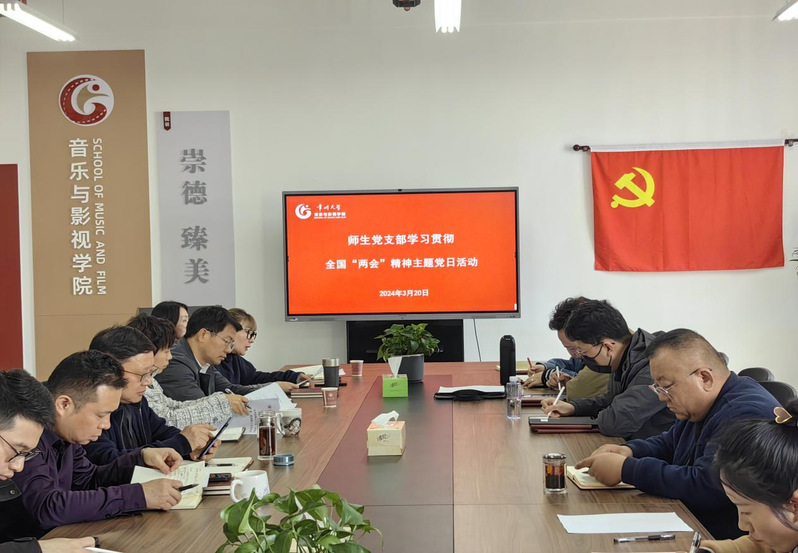 2024320日下午,在立行楼442会议室举行了音乐与影视学院师生党支部学习贯彻全国“两会”精神主题党日活动。会议开始前,唐琳书记对avbebe 师生党支部获批“全国党建工作样板支部”培育创建单位表示祝贺,并勉励各位党员同志不忘初心,继续前行。