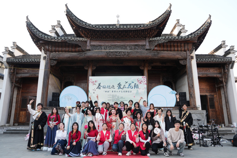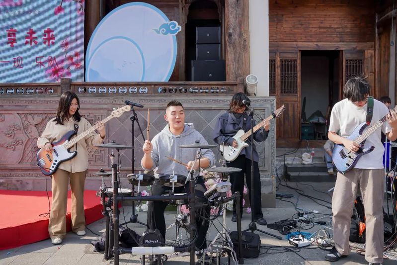 古戏台前,“春日邂逅 爱在花朝”——“两湖”青年人才交流联谊会热火朝天。来自音乐与影视学院的Last briefly 昙花一现”乐队、“不规则变量乐队”乐队上演了一堂别具一格的美育课堂。歌声婉转,曲声悠扬,鼓声激荡,为现场观众带来《空》《山海》《我的未来式》等脍炙人口的歌曲,沉浸的演出赢得场下观众的欢呼与掌声。