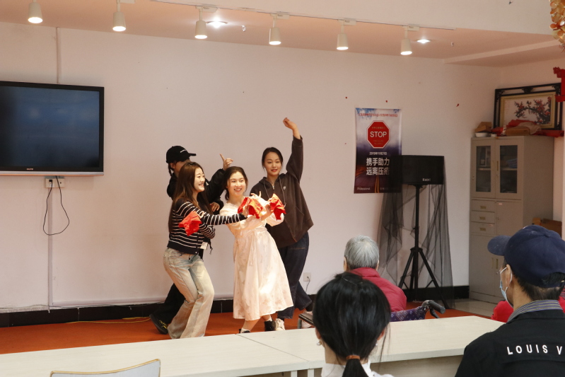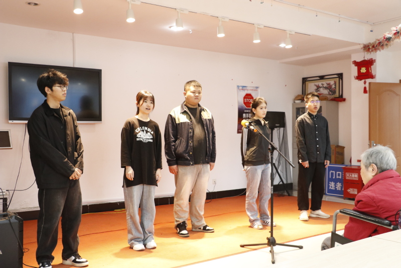 春日温暖,桃花盛开,一曲欢快的《桃花朵朵开》拉开了演出的序幕。同学们或唱或跳,或演或颂,为场下的老人们先后表演了《萱草花》《赛马》相亲相爱《热闹的一场年梦》《东北秧歌》等节目,歌声婉转悠扬,舞步欢快轻盈,朗诵铿锵有力,表演张弛有度,演出现场热闹非凡,在场的老人们脸上洋溢着开心的笑容,演出现场暖意融融、掌声轰鸣。
