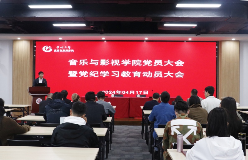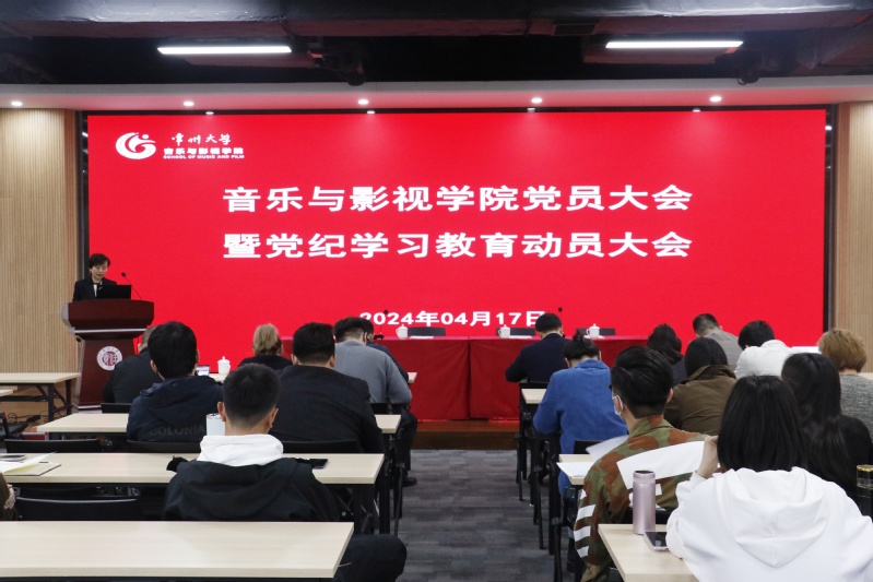 4月17日,音乐与影视学院在立言楼458会议室召开党员大会暨党纪学习教育动员大会。会议由院党总支副书记褚衍松主持,院党总支成员及学院全体党员参加会议。