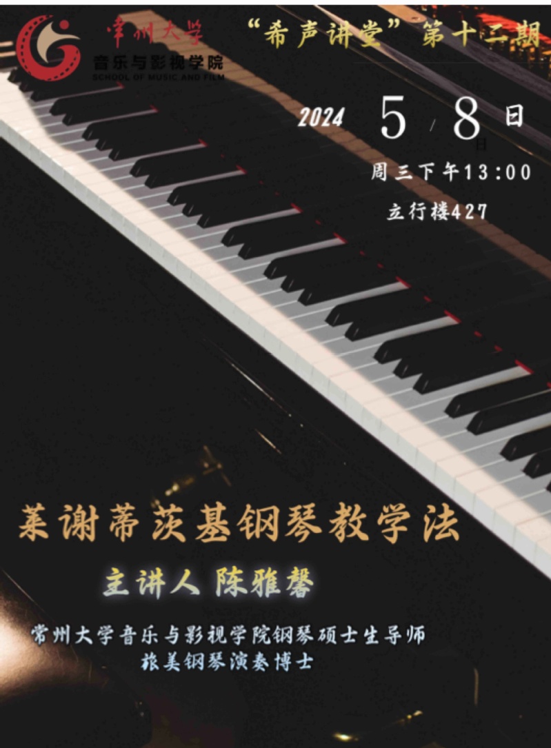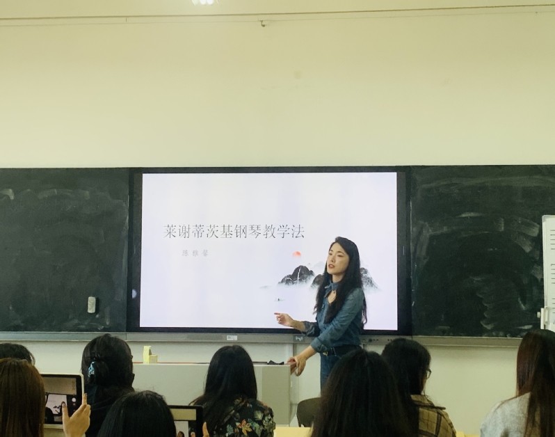 此次讲座主讲人陈雅馨,avbebe 音乐与影视学院钢琴硕士生导师,旅美钢琴演奏博士,钢琴演奏与钢琴教学法双硕士,江苏省高层次引进人才,美国国家音乐教师协会会员。讲座中,陈雅馨首先简要介绍了莱谢蒂茨基的背景与成就,分享了他的教育理念,然后详细讲述了莱谢蒂茨基对于钢琴演奏技术和音乐表演各个难点的教学和练习方法,最后与现场师生进行了互动交流。