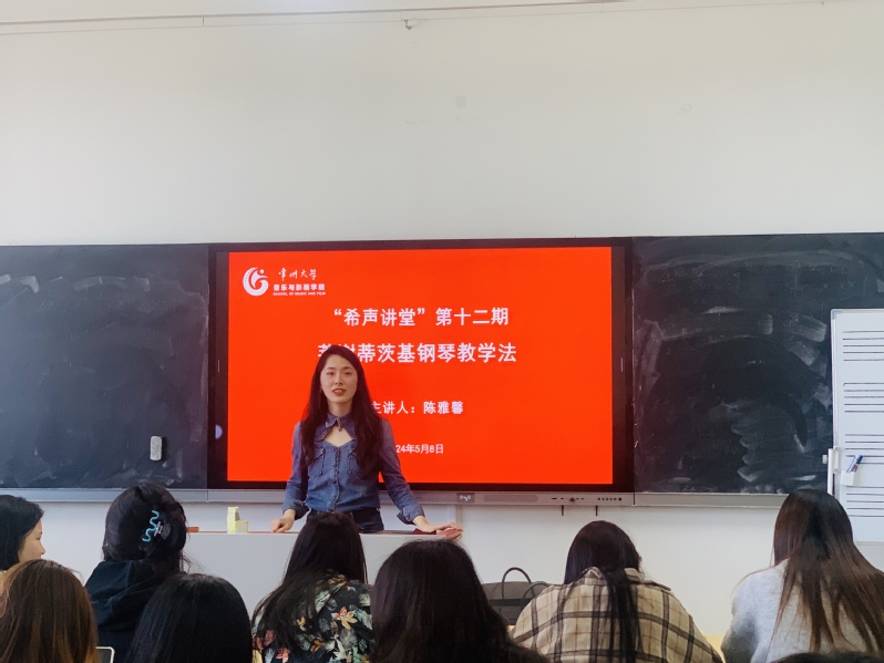 5月8日下午,音乐与影视学院在立行楼427教室举办“希声讲堂”第十二期讲座,学院钢琴专业教师和钢琴主项学生参加讲座。