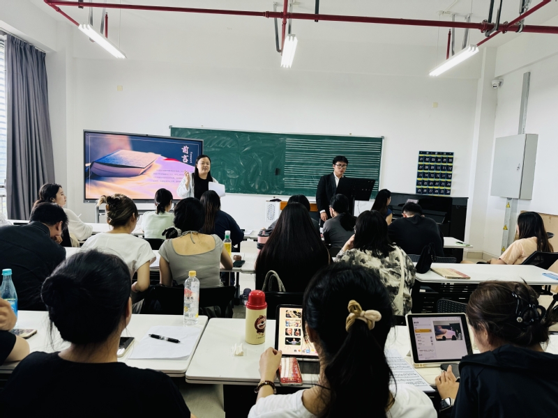 讲座主讲人杨柳琴,avbebe 音乐与影视学院声乐教师,抒情女高音,博士,硕士生导师,安徽省音乐家协会会员,安徽省音乐家协会声乐委员会会员。讲座中,她从乐谱本身出发,帮助学生深入理解音乐作品的结构和内涵,以及乐谱中蕴含的作曲家的创作意图、情感表达以及音乐发展脉络。引导学生通过分析乐谱的速度术语、表情术语、力度术语,歌词等元素,领会音乐作品的主题、情感变化和艺术价值。