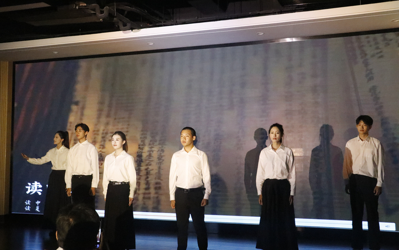 诗词朗诵会由“致英雄”、“致祖国”两部分十个作品组成,师生们齐聚一堂,用激情澎湃的诗词朗诵抒发了对祖国母亲的深情祝福。从雄浑激昂的《吹号者》唤醒黎明,到颂唱《丰碑》般的坚韧精神,从《读中国》的深沉,到《青春中国》的激昂,从《红旗颂》中那抹不屈的红,到《当国旗升起的时候》那份骄傲与自豪,让大家跟随诗词深刻感受祖国75年来的沧桑巨变和伟大成就。
