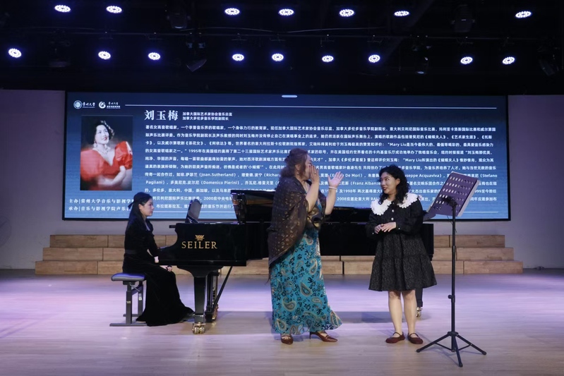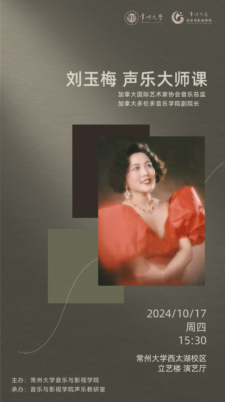 10月17日,著名女高音歌唱家、加拿大多伦多音乐学院刘玉梅教授应邀来我校开展大师班讲座。音乐与影视学院领导班子、音乐系教师和学生参加此次讲座。