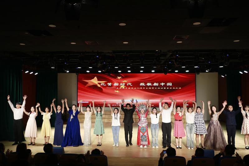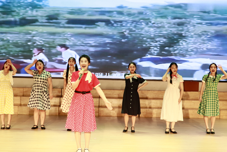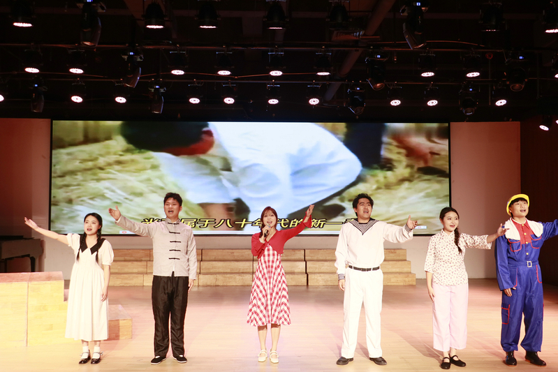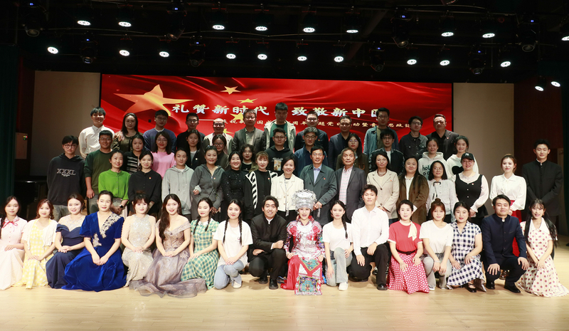 歌声激昂,忆往昔峥嵘岁月;初心回响,赞盛世山河无恙。近年来,音乐与影视学院党总支高度重视铸魂育人,不断丰富主题党日活动和思政教育开展的形式和资源,注重将党建工作与专业教学深度融合,思政教育与音乐艺术有机融合,特别是通过深入挖掘艺术类活动中的思政元素,以美育人、以美化人,打造了鲜活的主题党日活动和音乐思政课。此次“礼赞新时代 致敬新中国主题党日活动暨音乐思政课,由音乐系教师段苏珊和她的18名不同年级的学生共同策划演出。活动以演绎经典歌曲的方式向祖国献礼,用音乐讲述新中国从站起来到富起来再到强起来的发展历史,用歌声表达对祖国的美好祝愿。