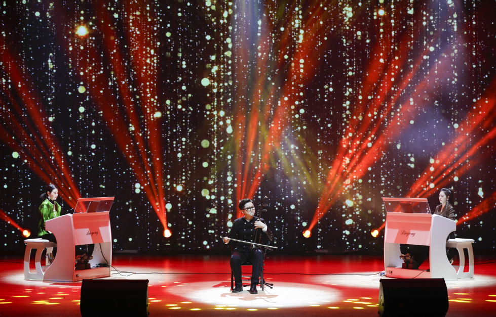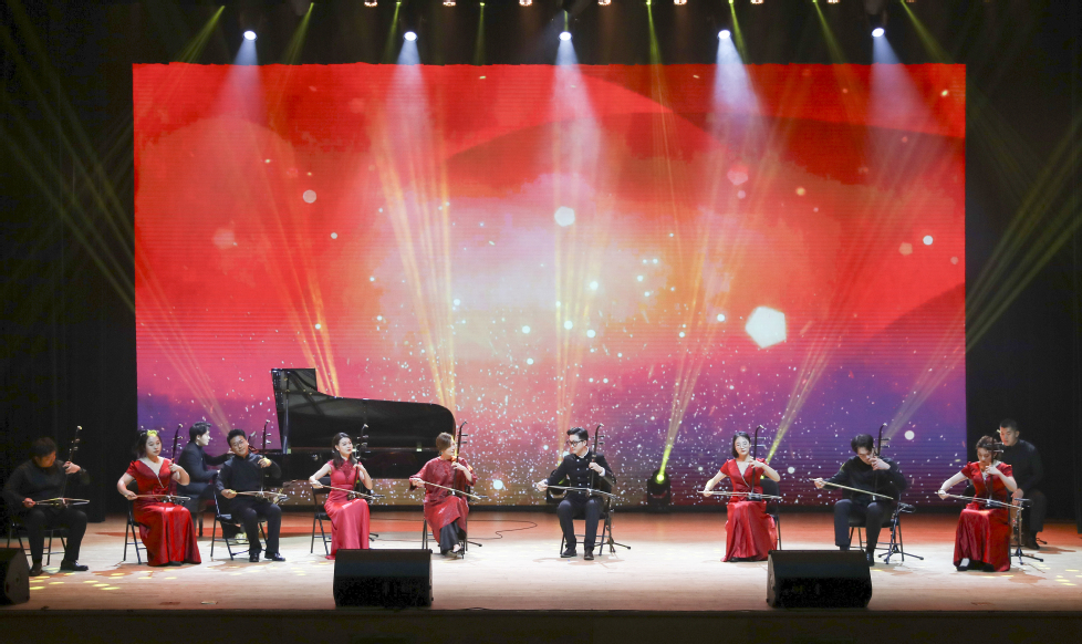 激昂澎湃的古典舞《黄河》拉开了晚会序幕,以简约而深刻的舞蹈语言展现出古典舞和革命史碰撞的魅力;江苏省大学生戏剧展演一等奖作品《缺氧,不缺信仰》引人入胜,通过多元化人物塑造和现实主义描绘,历练出新时代青年人炽热的家国情怀与无畏担当!歌曲联唱《红色记忆》以一首首经典红色歌曲向祖国献礼;由全体二胡师生共同演绎的《光明行》颇有跌宕起伏、八方云集的宏大气势,是热爱,更是传承;古典舞《相和歌》行云流水,刚柔并济,充分体现了舞蹈演员不仅是肢体上的表演者,更是文化的研究者和传承者;器乐重奏《渔舟悦》《山语·幻》紧扣时代脉搏,以恢宏叙事和具象表达奏响了新时代民乐的蓬勃生机;四重唱《往日时光》、《光芒》把晚会推向高潮,极富感染力的演唱震撼人心,照亮了每一个中华儿女的前进方向;二胡与电子管风琴《楚颂》燃爆全场,中国传统乐器与西方现代乐器的跨界碰撞,独特的曲风打破了民族音乐传统语言界限,似乎把观众带入了一场气势雄浑的交响乐;由教师舞动青春舞蹈队带来的舞蹈《舞韵龙城》编排精美,尽显巾帼风采;龙游话剧团的朗诵《当国旗升起的时候》,用铿锵有力的誓言向祖国深情告白,中国魂在青年心中熊熊燃烧。晚会在合唱《莫斯科郊外的晚上》《我的祖国》中落下帷幕。