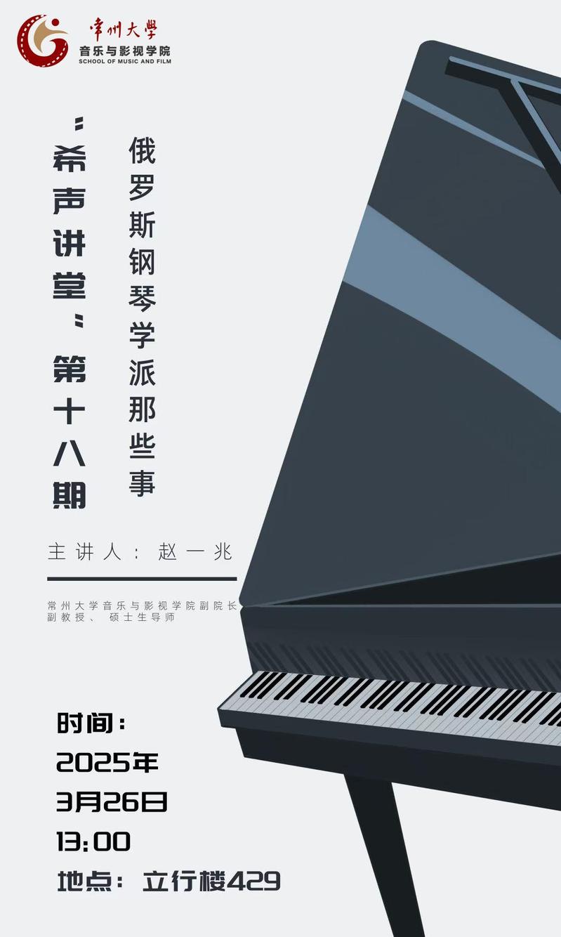 3月26日下午,学院在立行楼429室举办“希声讲堂”第十八期讲座《俄罗斯钢琴学派那些事》(第一课)。讲座由副院长王成文主持,学院钢琴专业教师、全体研究生及钢琴主项本科生参加讲座。