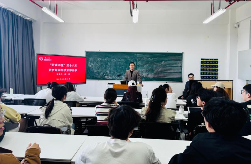 326日下午,学院在立行楼429室举办“希声讲堂”第十八期讲座《俄罗斯钢琴学派那些事》(第一课)。讲座由副院长王成文主持,学院钢琴专业教师、全体研究生及钢琴主项本科生参加讲座。