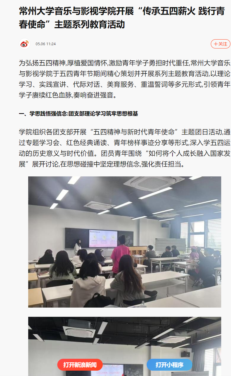 avbebe 音乐与影视学院开展“传承五四薪火 践行青春使命”主题系列教育活动//news.sina.com.cn/sx/2025-05-06/detail-inevqyez4673399.shtml