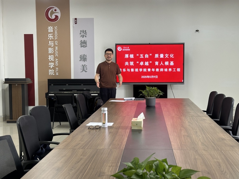 2025年5月9日下午,音乐与影视学院“厚植五自质量文化、共筑卓越育人根基”青年教师培养工程在立行楼442举行。校关工委袁能、副院长赵一兆、院长助理张舒扬及学院教师参加活动,活动由赵一兆主持。