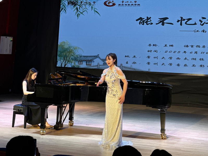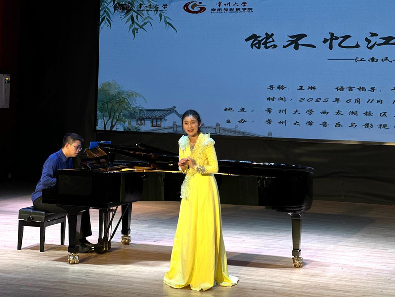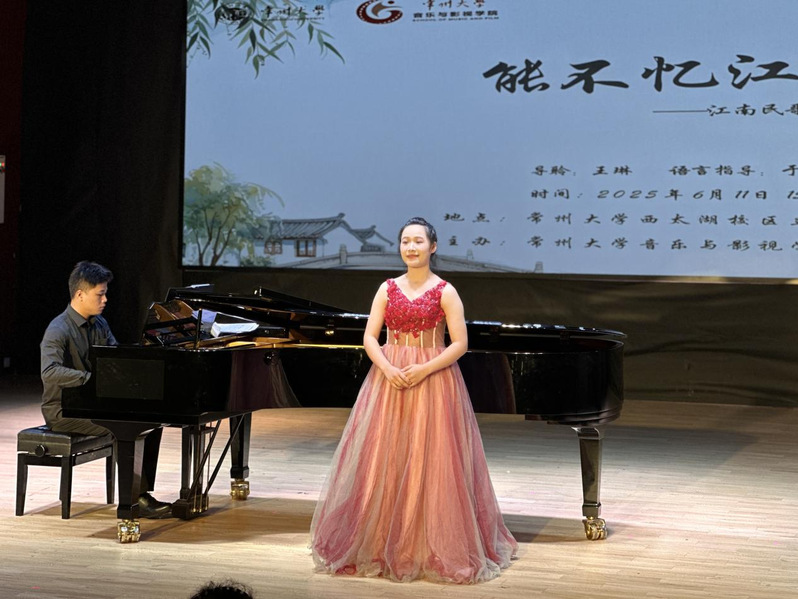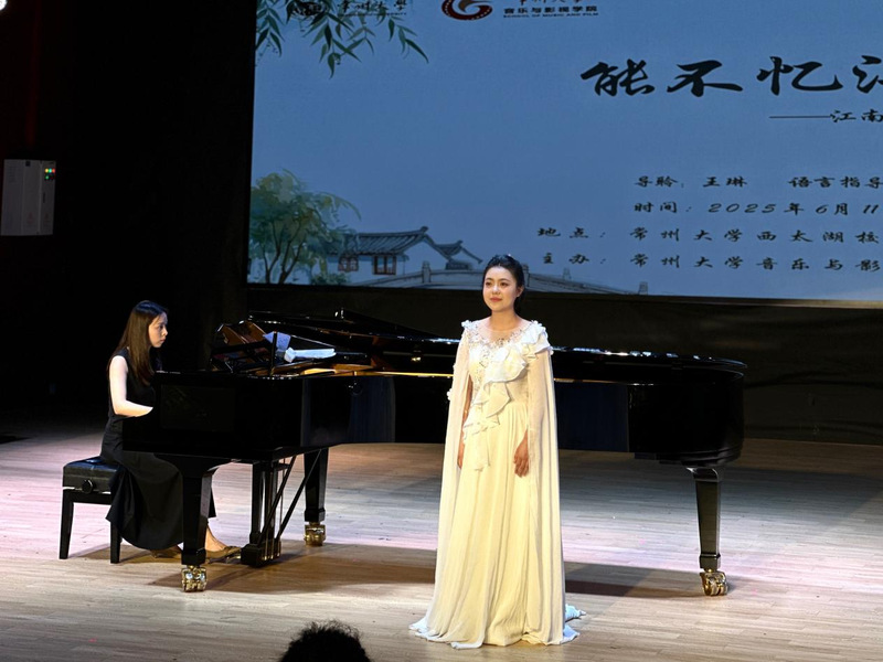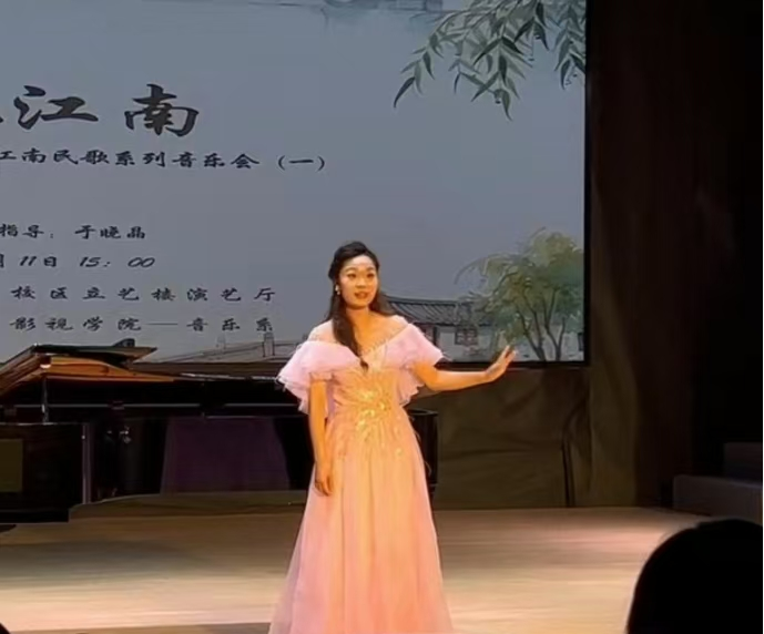 音乐会由王琳老师担任导聆,于晓晶老师进行语言指导,学院2022级、2023级、2024级民族声乐表演方向的7位硕士研究生现场演绎了《无锡景》《四季歌》《紫竹调》《姑苏风光》等14首经典江南民歌。通过这些旋律,我们得以窥见江南水乡的自然风貌、风土人情以及世代相传的生活智慧与审美情趣。音乐会是学院音乐硕士民族声乐方向教学成果的一次重要展示,同学们的精彩演绎,既是对传统民歌艺术的致敬,也是一次当代青年对本土文化的积极探索与再创造。