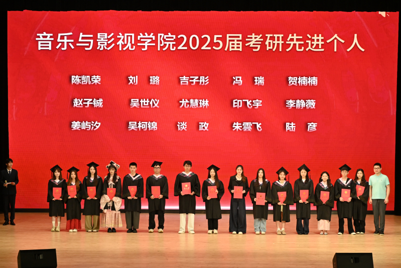 毕业典礼在庄严的国歌声中拉开帷幕。伴随着毕业视频,一曲毕业生改编版《第57次取消发送》唱出了对大学时光的追忆与对离别的不舍。在表彰环节,学院为优秀毕业生、考研先进个人、江苏建设卓越奖教金、江苏建设奖学金获得者颁奖,充分发挥榜样作用,激励学院师生拼搏奋进,昂首向前。歌曲《灯火里的中国》感召毕业学子厚植家国情怀,用文艺之声唱响祖国的大好山河。音乐211班王琬清、Y2219音乐班胡炜分别作为本科生、研究生毕业生代表上台发言,一言一语中无不饱含一路走来的汗水与努力,以及对母校的爱与感激。辅导员罗扶摇作为教师代表上台发言,回顾了与2025届毕业生一同踏入校门的美好时光,寄语毕业学子做一个孝顺、善良、勇敢、快乐的人。舞蹈《阳光下的麦盖提》活力满满,寓意同学们与光同行,元气满满开启全新的征程。