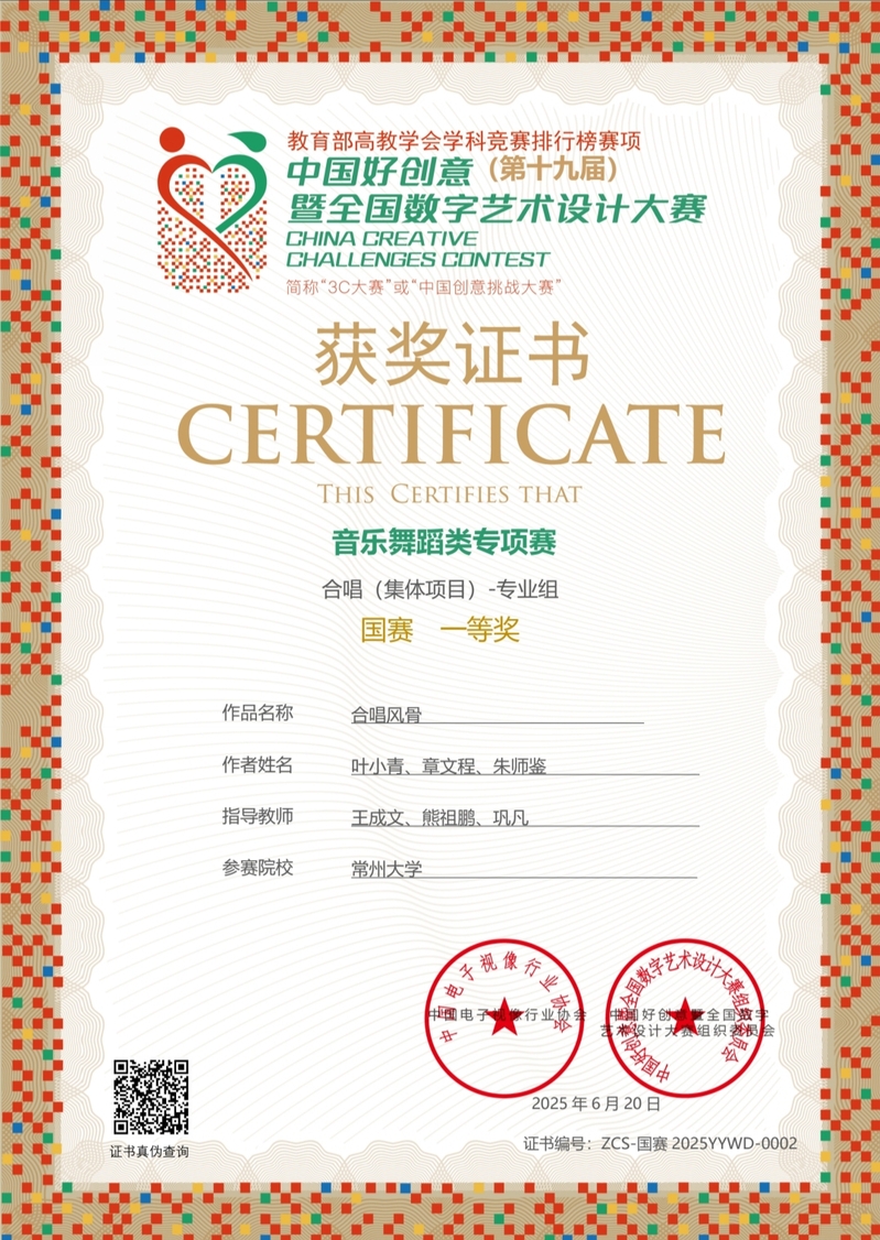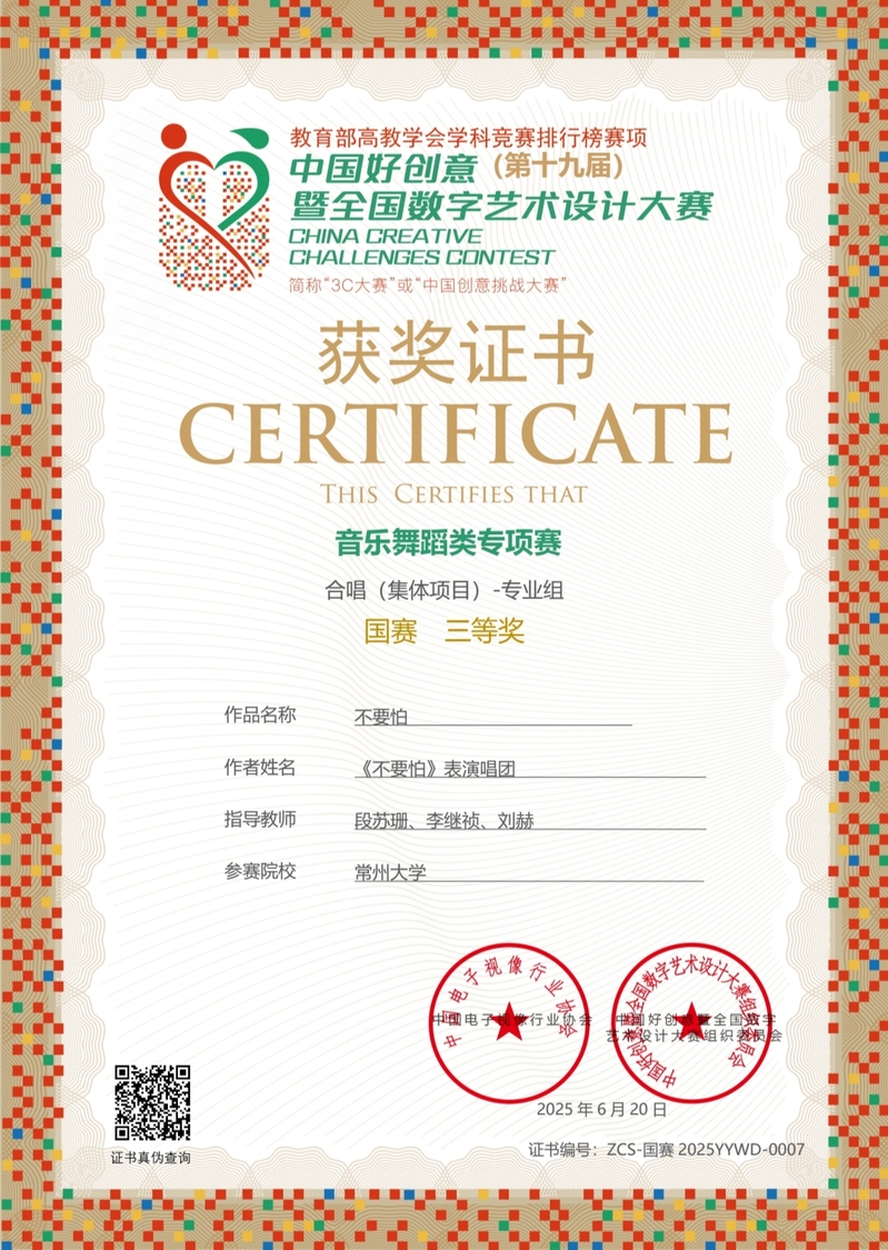 在此次赛事中,学院师生积极参与合唱、声乐、舞蹈、歌曲创作等多个项目。经过激烈的角逐,一举斩获国赛一等奖3项:大合唱《风骨》、舞蹈(集体项目)《丰乐年》,以及与江苏理工学院合作的声乐作品《感激》;此外,还荣获国赛三等奖5项,包括表演唱《不要怕》、小合唱《教我如何不想她》、歌曲创作《奔涌龙城》、舞蹈(个人项目)《秋》、舞蹈影像《日赴·复·富一日》,充分体现了创作的多元性。