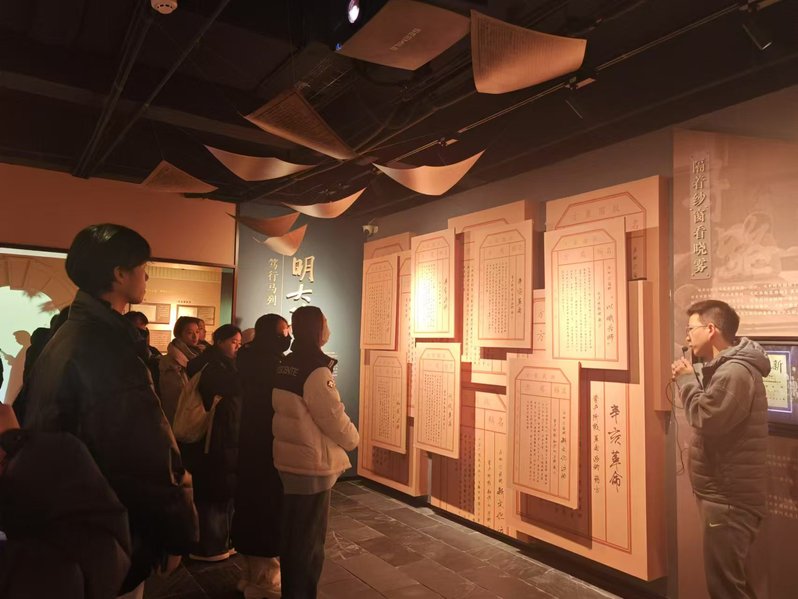 在场馆专业讲解员的引领下,团员们怀着崇敬之心,缓步穿行于承载厚重历史的展陈空间。泛黄的珍贵手稿、朴素的革命遗物、定格重大时刻的历史影像,无声诉说着“常州三杰”为民族复兴燃烧青春的壮烈诗篇。瞿秋白于长汀从容就义前“此地甚好”的淡然,张太雷“谋将来永远幸福”的赤子初心,恽代英狱中“我愿我的磷发出更多的热和光”的坚定誓言,通过讲解员深情的叙述变得格外具象而滚烫。当张太雷“谋将来永远幸福”的家书字句在眼前展开,那穿透纸背的信念令在场学子无不动容。