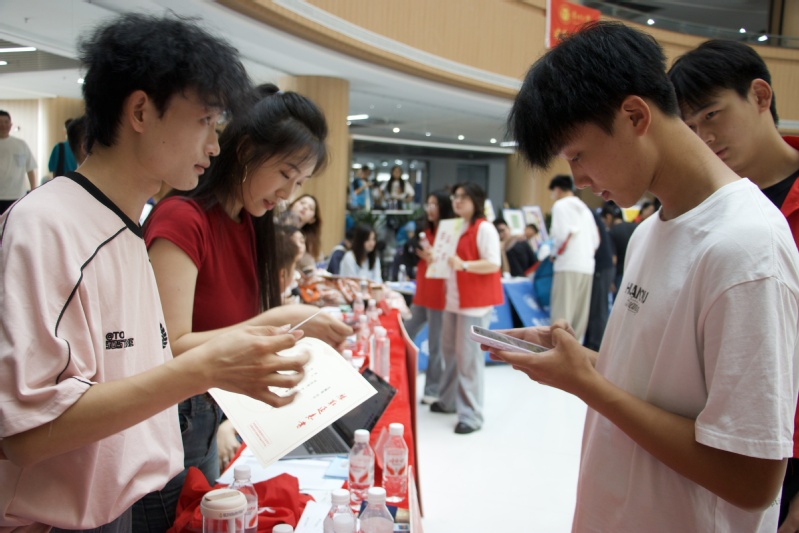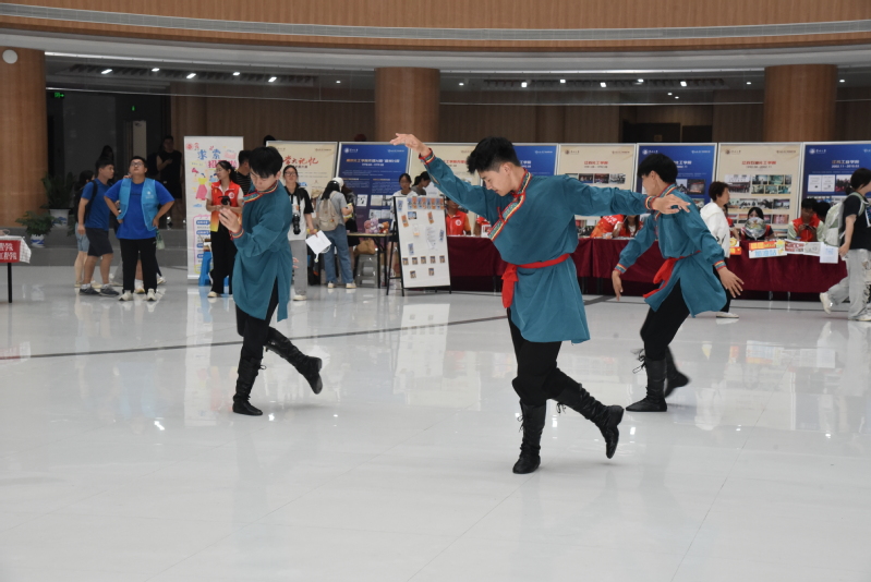 学生志愿者发挥专业所长,载歌载舞,为热火朝天的迎新现场带来丝丝艺术之息。音乐专业学生现场弹唱经典曲目,舞蹈学生则表演起各式民族舞蹈,用专业实践传递学院温度,展现“艺术即生活”的育人理念。
