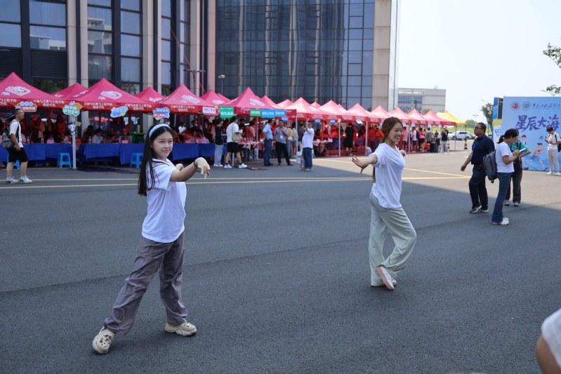学生志愿者发挥专业所长,载歌载舞,为热火朝天的迎新现场带来丝丝艺术之息。音乐专业学生现场弹唱经典曲目,舞蹈学生则表演起各式民族舞蹈,用专业实践传递学院温度,展现“艺术即生活”的育人理念。