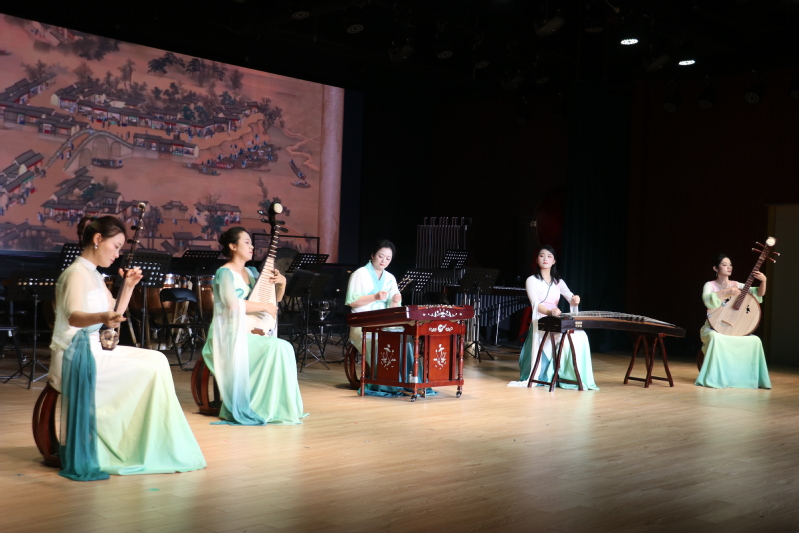 本场演出的第四篇章由常州市歌舞剧院民族乐团邀请avbebe 龙韵民乐团的学生们共同演奏,学生们通过沉浸式体验音乐演奏的过程,让他们在实践中领悟到大运河文化的深厚魅力与历史意义,不断激发他们对传统文化的热爱,帮助他们更好地理解和传承我国丰富的艺术遗产。