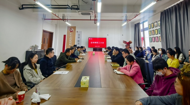 会议强调,一要强化思想引领,筑牢信仰根基,将习近平新时代中国特色社会主义思想作为教师政治理论学习的核心内容,引导教师在艺术创作与实践中坚定文化自信、践行社会主义核心价值观。二要压实各级责任,完善工作机制,形成“党委统领、党政同责、齐抓共管、系部落实、教师自律”的工作格局,确保师德师风建设贯穿教师管理全过程。三要创新师德教育,突出艺术特色,依托红色文化资源和师德涵养基地,通过艺术创作等形式,增强师德教育的感染力与实效性。四要严格考核监督,落实“一票否决”, 严格执行学校《师德失范行为负面清单及处理办法》,将师德考核摆在教师考核的核心位置,畅通师德师风投诉渠道,建立师德档案,强化结果运用。五要推动思政与专业深度融合,鼓励教师在课程教学、艺术创排中融入思政元素,支持原创主旋律作品创作,将舞台转化为“思政大课堂”,实现价值引领、知识传授与能力培养的有机统一。