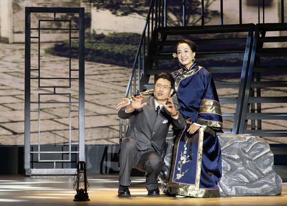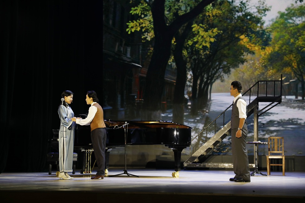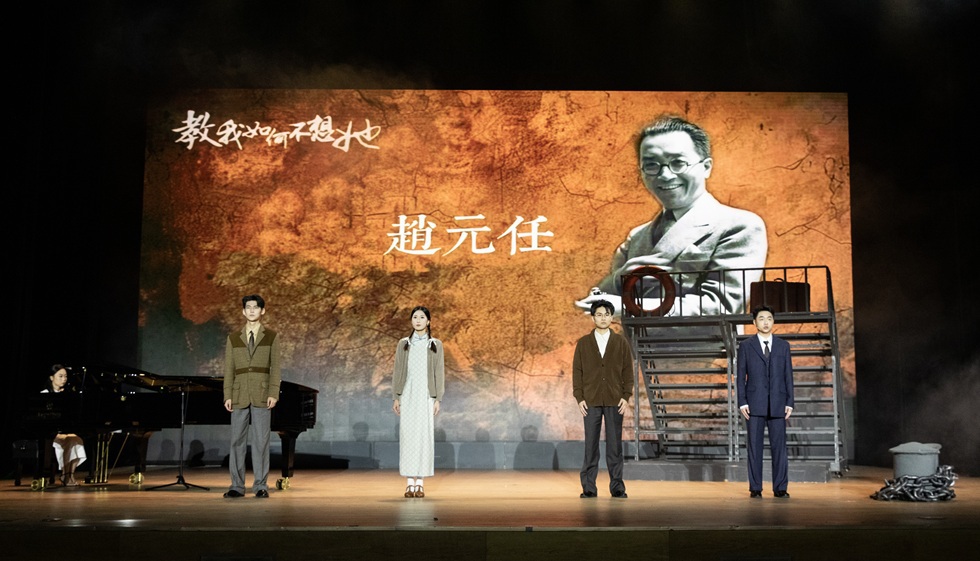 《教我如何不想她》以赵元任先生的人生轨迹为线索,通过“微风吹”“银月夜”“落花游”“映残霞”四幕,生动再现了他从少年求学到海外留学,从语言研究到音乐创作,从情感抉择到家国情怀的丰富人生。剧中融合了赵元任先生谱写的经典艺术歌曲《教我如何不想她》,并巧妙运用吴语变奏、民乐伴奏等手法,营造出浓郁的时代氛围与情感张力。赵元任先生作为“中国现代语言学之父”、现代音乐学的开拓者,他不仅在学术上成就卓著,更在音乐创作中融合中西、贯通古今,为中国现代艺术歌曲的发展奠定了坚实基础。话剧通过他与刘半农、胡适、杨步伟等重要人物的互动,展现了他作为学者、作曲家、丈夫与爱国者的多重身份,也让观众深刻感到“她”不仅是具体的人,更是故乡、友人、爱人与祖国的象征。同样在人物塑造上也浓墨重彩地呈现了刘半农先生的人物形象——作为五四新文化运动的猛将、著名诗人与语言学家,他性格率真、幽默豁达,富于探索精神。剧中通过“数人会”研讨、巴黎初识、共同创作《教我如何不想她》等情节,淋漓尽致地展现了他与赵元任之间“珠联璧合”的深厚友谊,以及他为创立“她”字而展现出的文化勇气与学术担当。