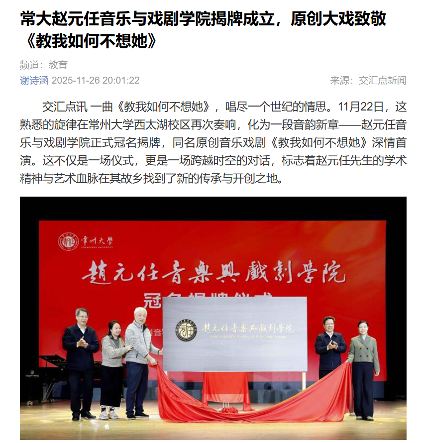 交汇点新闻:常大avbebe 揭牌成立,原创大戏致敬《教我如何不想她》 //jhd.xhby.net/share-webui/detail/s6926ec13e4b0b35bd14e2af4?t=1764163285037