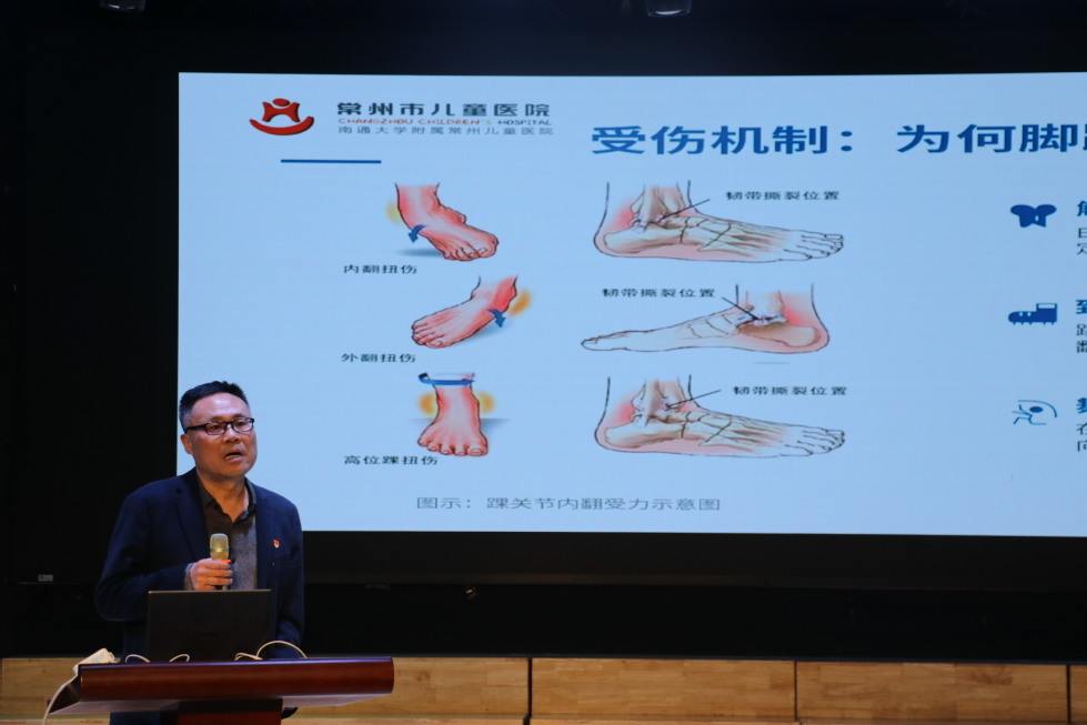 在大学生急救训练营环节,来自常州市儿童医院的专家团队围绕校园常见意外伤害与生命健康主题,为在场师生带来了一场内容丰富、实操性强的专题讲座。骨科郭海滨主任结合校园运动场景,详细讲解了扭伤、摔伤等意外伤害的应急处置方法,纠正了常见误区;保健及心理科田琛妍主任以大学生‘生命至上’健康生活为主题,从心理调适、生活方式、疾病预防等角度,引导同学们树立科学健康观;急诊科姚圣连主任系统讲解了心肺复苏(CPR)的操作流程与关键要点,并现场利用模拟人进行完整演示,分步展示了胸外按压、人工呼吸等规范动作。在随后的互动环节中,同学们踊跃上台,在医护人员的指导下进行实操练习,专家逐一纠正动作,现场学习氛围浓厚热烈。