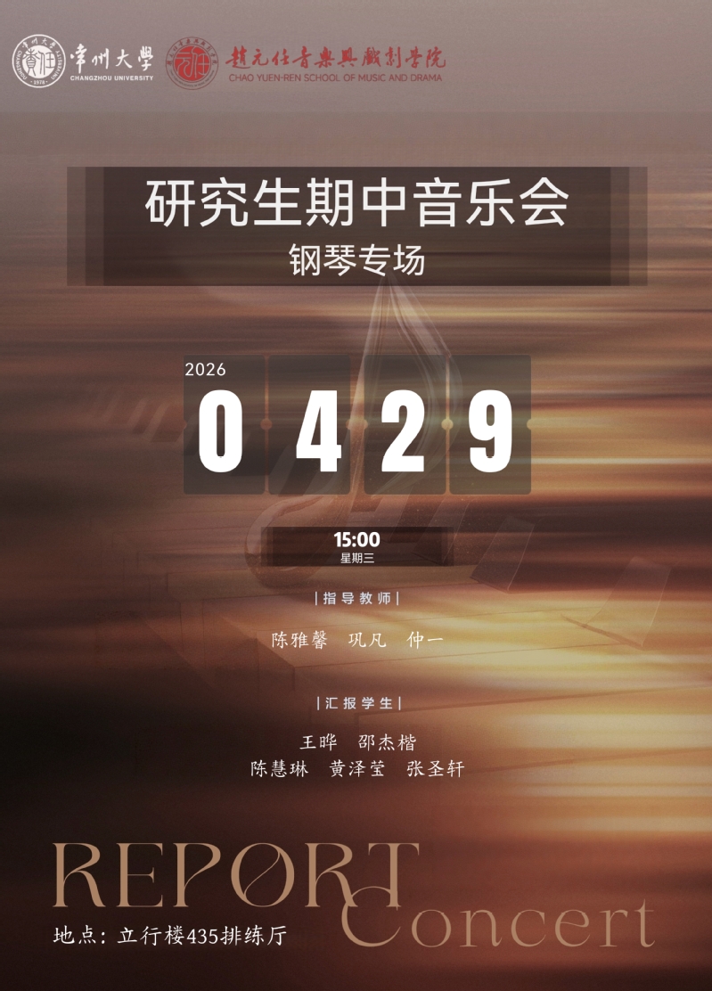 音乐会预告丨4月29日:研究生期中音乐会(钢琴专场)